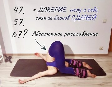 - «Шикарная тренировка! Лицо подтянулось в конце и губы даже припухли от положения вниз головой! Самый кайф махи назад, подпрыгивала как птичка! От животного шага кипел мозг и тело. Скручивает на коленях — тяжело, больно, вкууусно невероятно. На правой руке сложнее далось. На голове стоять не умею, страх — стояла как в высокой планке на стене — прессом к стене. Первое упражнение — самое сложное тянуть пятку в пол после подъема ноги, фокусируясь на этом усложнила. Спасибо!»