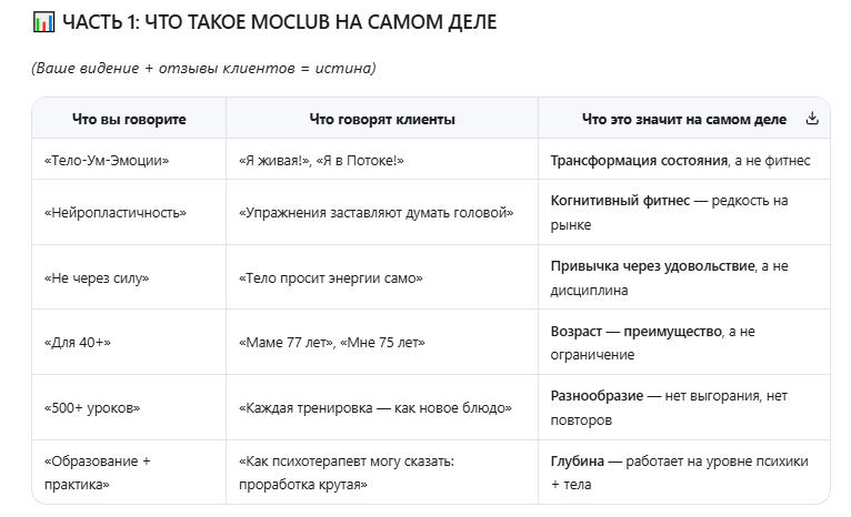 - Ваша уникальность — в интеграции. Конкуренты дают: фитнес ИЛИ питание ИЛИ психологию. Вы даёте всё сразу в одной системе.